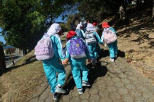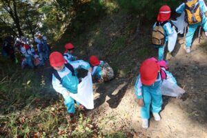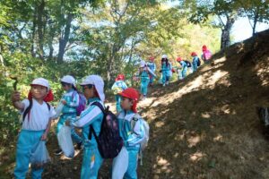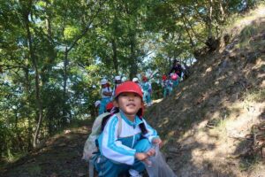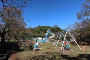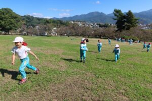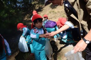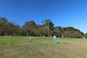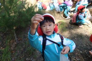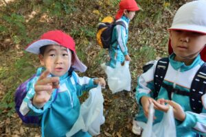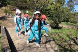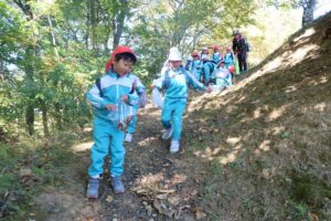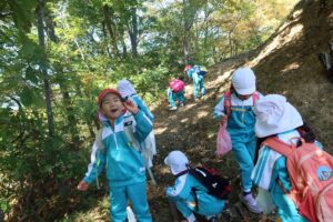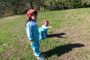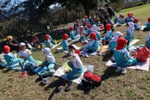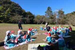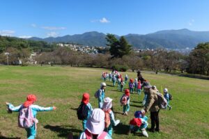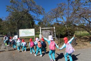 昨日までの天気とは打ってかわり今日は快晴。年中児と年長児の遠足の目的地は城山公園です。