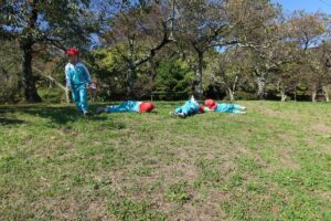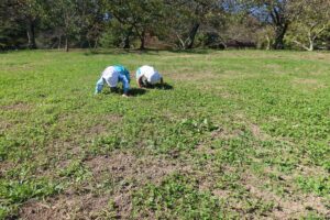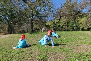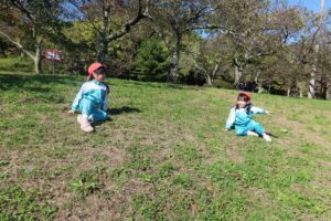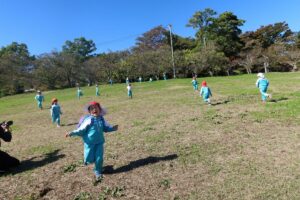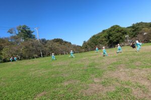 傾斜のある原っぱを駆け上ったり、駆け下りたり。