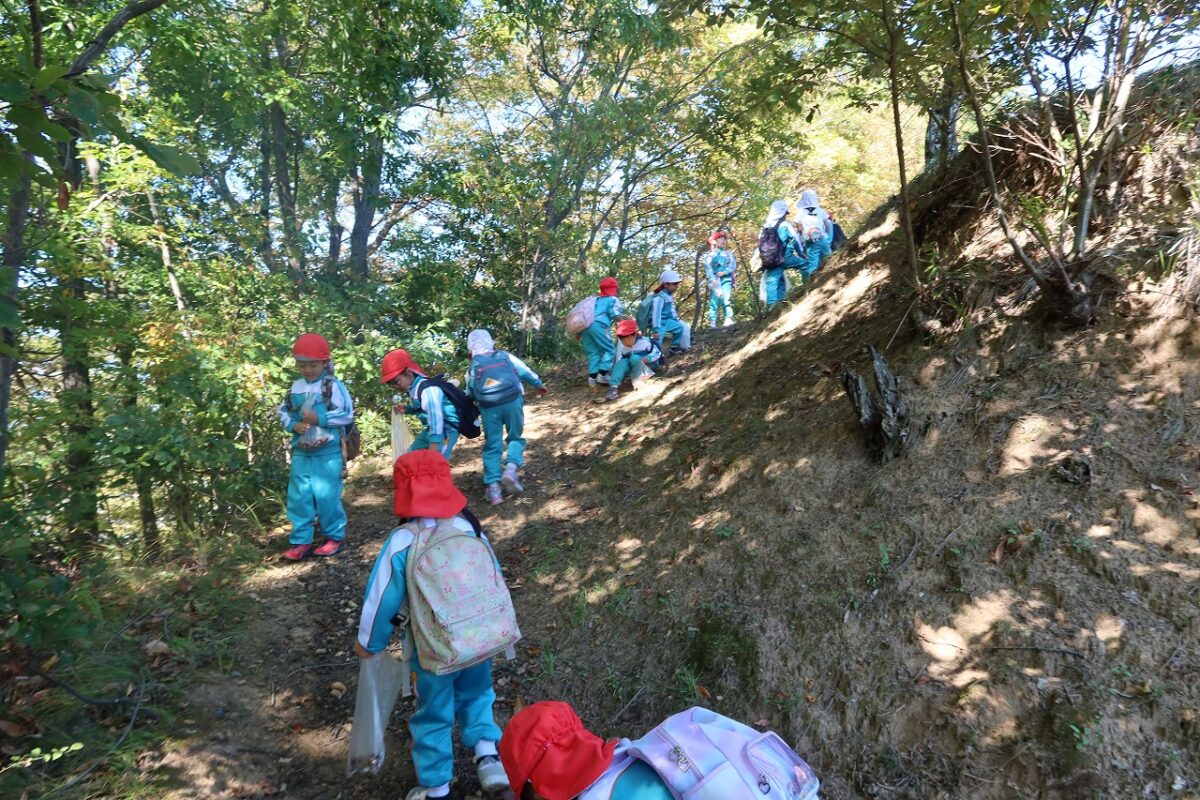 昨日までの天気とは打ってかわり今日は快晴。年中児と年長児の遠足の目的地は城山公園です。