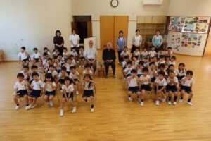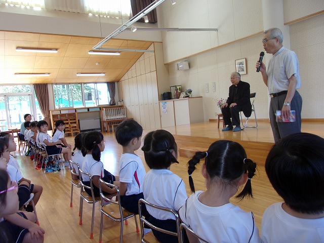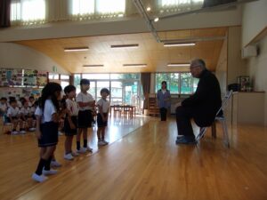 理事長先生ようこそ!2025年9月24日|By teresia-editor今日は待ちに待った日! 今日はなんと、理事長先生である司教様が幼稚園に来てくれるんです。3年に1回来て下さる特別な日。 この日の為に、今頑張っている運動会の踊りを見てもらおうと、みんなで張り切っていました。 聖テレジア幼稚園へようこそ!まずはご挨拶。 そして各クラス、踊りを見ていただきました! 最後に各クラスに嬉しい言葉も頂きましたね。 運動会、がんばるぞ~!とより張り切る子どもたちです。 記事一覧に戻る 満3歳児クラス つぼみ組です日々の記録楽しかった運動会!