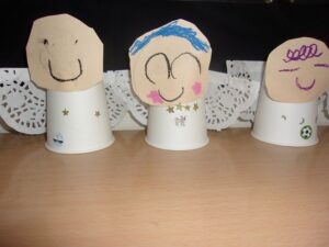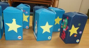 馬小屋のアドベントカレンダーで一人ひとりかいばおけを作って心の中にいるイエスさまをお迎えします。