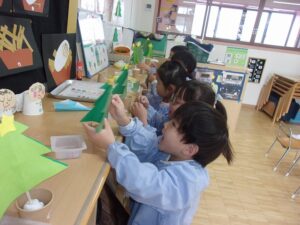 早いものでもう12月。幼稚園ではイエスさまのご誕生をお祝いするクリスマス会に向けて準備をしています。