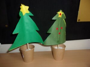 そして…ゆり組はクリスマス会で『ページェント』とという、イエスさまがお生まれになったことを歌で伝える劇をします。その歌を心を込めて歌えた時、お友だちに優しくできたとき、お祈りができた時・・・目には見えないけれどそれを「心のプレゼント」としてイエスさまに喜んでもらえることができた時に自分で作ったもみの木にシールを貼っています。