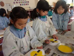 豆まきをしよう、じゃあ鬼のお面を作ろう!ということで1月終わりころから鬼のお面を作り始めました。