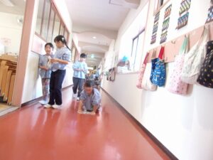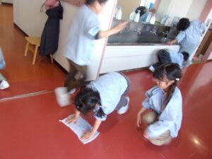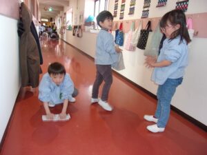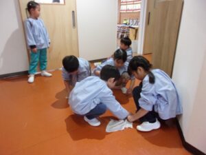 ぞうきんがけを頑張っています!~ゆり組~