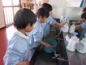 ぞうきんを干したら、しっかり石けんで手を洗おうね!
