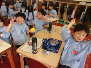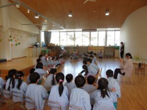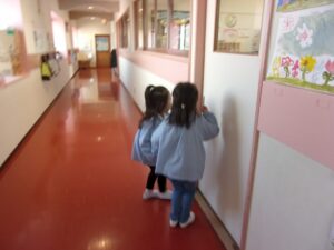 前日、すみれ組さんへ招待状を届けに行きました。
