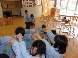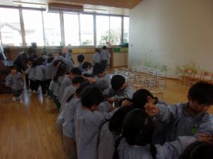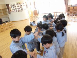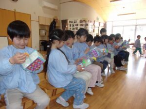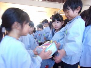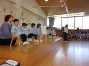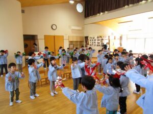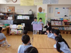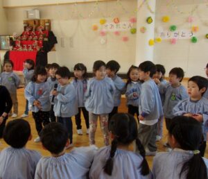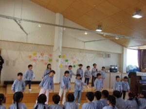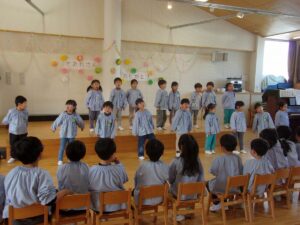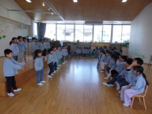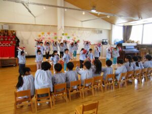 3月5日、もうすぐ幼稚園を卒園する年長すみれ組さんへ、感謝の気持ちを伝える「ありがとう会」が開かれました。この日のために、つぼみ組、ばら組、ゆり組が力を合わせて準備をしてきました。