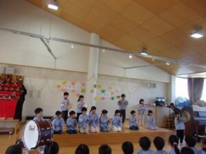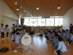 3クラスの発表の後は・・・ばら組とゆり組で合奏のプレゼント!