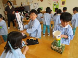 新しい部屋、新しい目印のシール…そして何より、自分たちよりも小さなお友だちが幼稚園に仲間入りし、お兄さんお姉さんになったこと!本当に大きな出来事なのだと思います。
