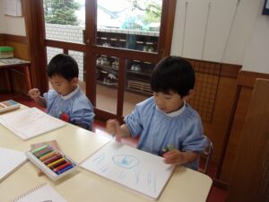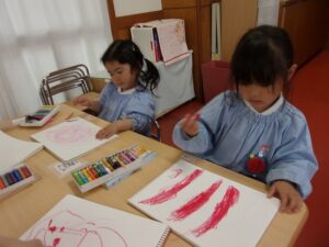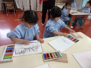 クレヨンを使って絵を描いたり