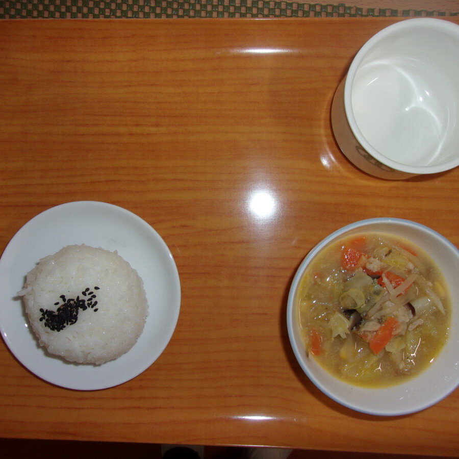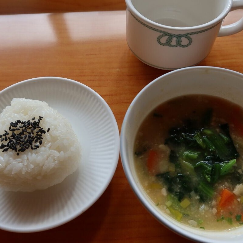 今日の献立 「おにぎり 味噌ラーメン風スープ 牛乳」 栄養士さんからのコメント…
