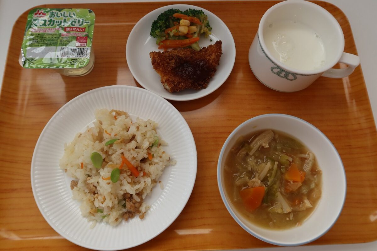 今日は、甘辛い具材を混ぜ込んだ、可愛らしい名前の「こぎつねごはん」です。静岡県浜松市の学校給食が発祥で、子どもたちから長年愛される人気メニューだそうです。油揚げを大きめに切ってあると「きつねごはん」、細かく刻んでいると「こぎつねごはん」というように区別されている様です。