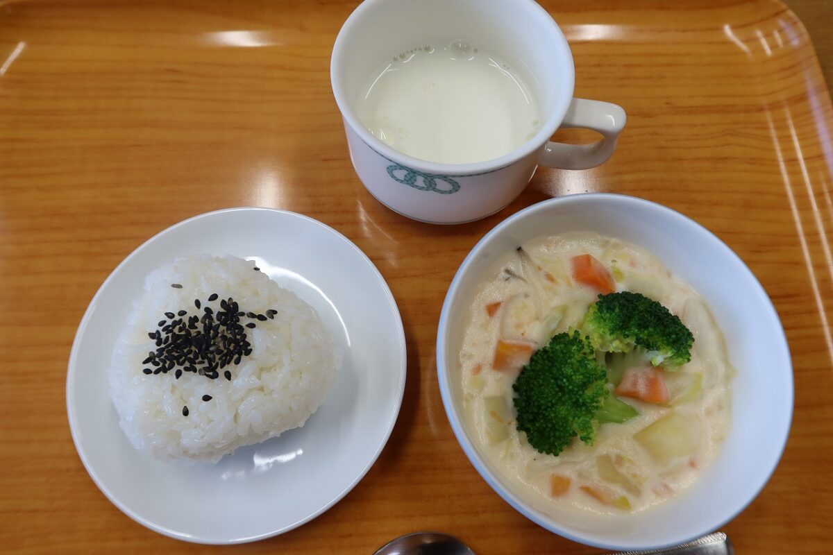 今日のシチューのたん白源は、鮭フレークを使います。お肉を入れた味とは違ったおいしさがあると思いまう🅂。他、じゃが芋、人参、浜ネギ、しめじ、キャベツ、色どりにブロッコリーを入れます。ルーは市販のものを使わずにバターで炒め小麦粉を振り入れ、牛乳で伸ばしたルーです。自然のお味だと思います。