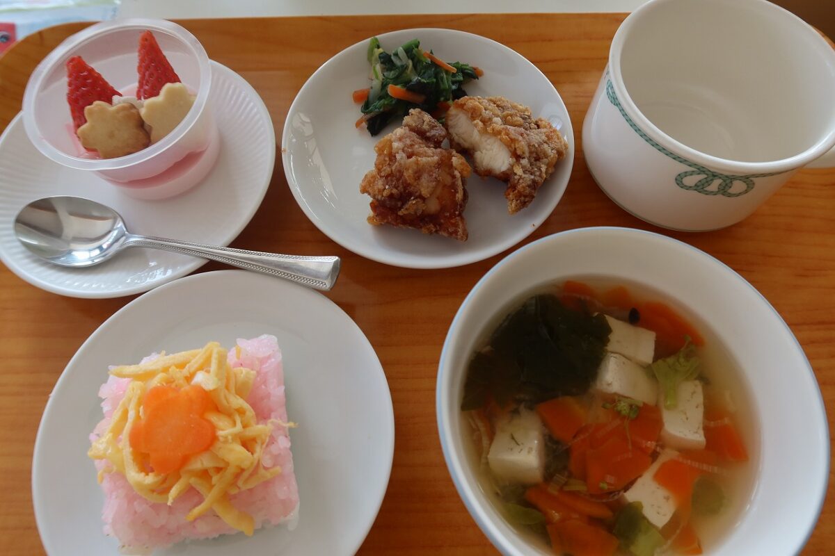 今日はひな祭りメニューです。